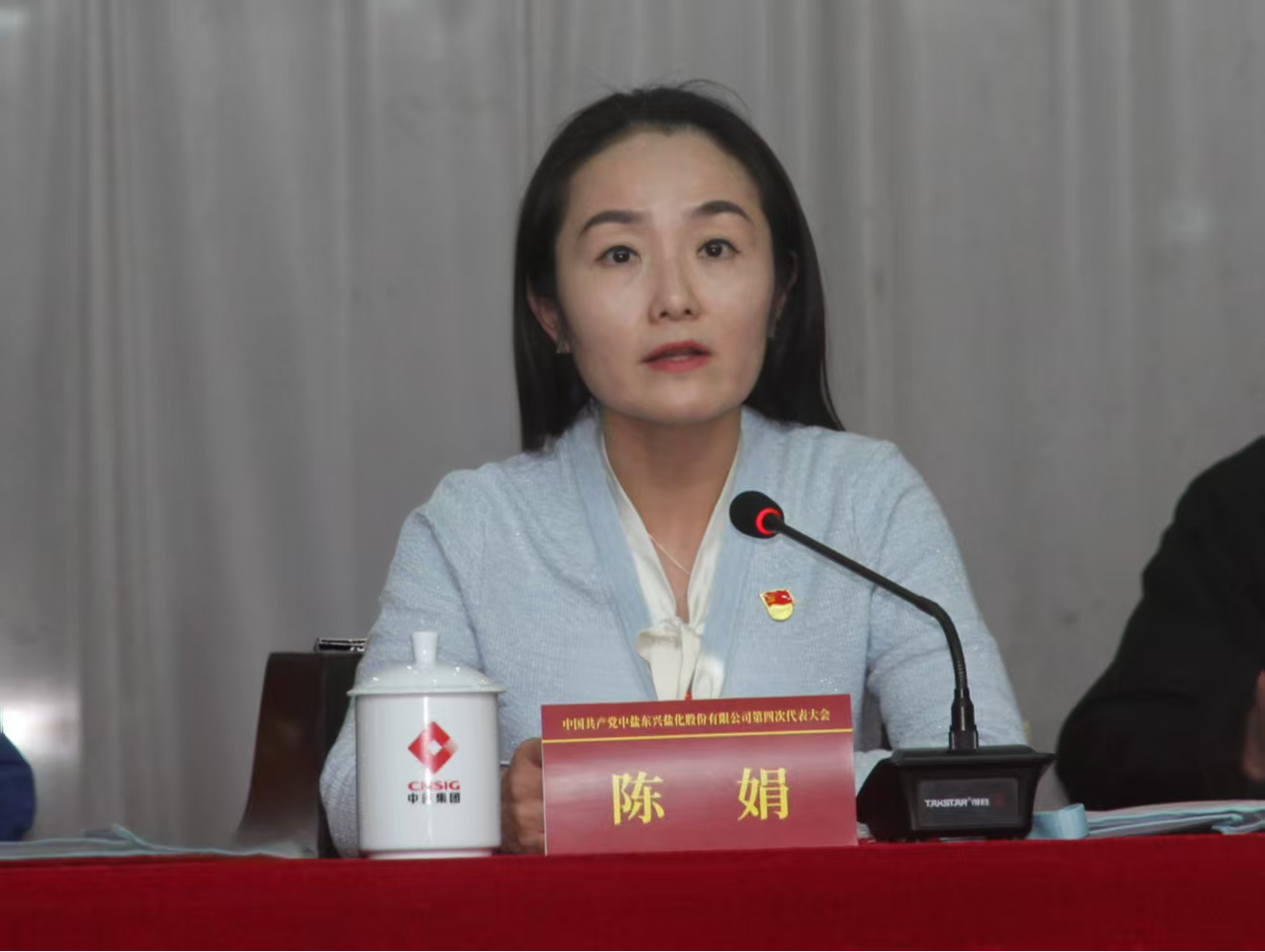 陈娟在讲话中充分肯定了中盐东兴公司党委过去几年工作取得的成绩,并对新一届党委班子提出希望。