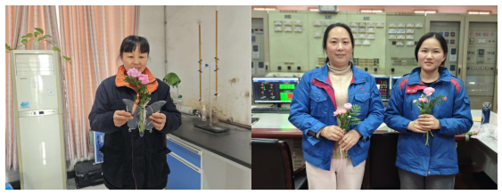 清晨,一束束象征爱与敬意的康乃馨被精心包扎,一封封手写体印刷的慰问信叠放整齐。办公室工作人员带着这份特殊的节日礼物,走进生产车间、主控室、热电化验室等一线岗位,将鲜花与信件亲手送到每一位女工手中。